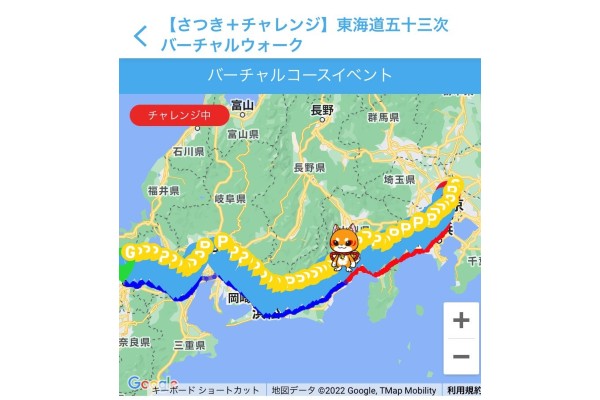 これは5月2日(月)~5月29日(日)の28日間で、アプリ上に設定された「東海道五十三次コース(約492km)」を歩くイベントです。