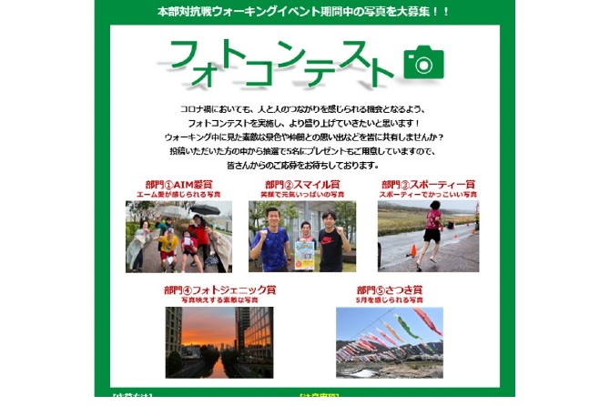 期間中だけでなく、イベント後も従業員の運動をするきっかけになるよう、最後まで社内で盛り上げていきたいと思います。