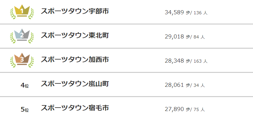 ウォーキングの部、現時点の第1位は「山口県宇部市」!