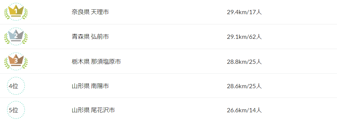 ランニングの部、第1位は「奈良県天理市」!