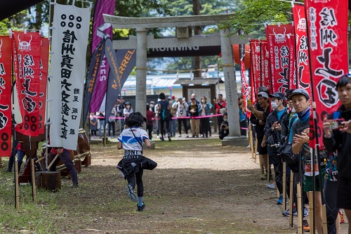 緑深き山道に響き渡る陣太鼓のリズムと法螺貝の音色。真田幸村がはねあげる采配とともにランナーは一人一人、古の戦いが刻まれた森に駆け出していくー。