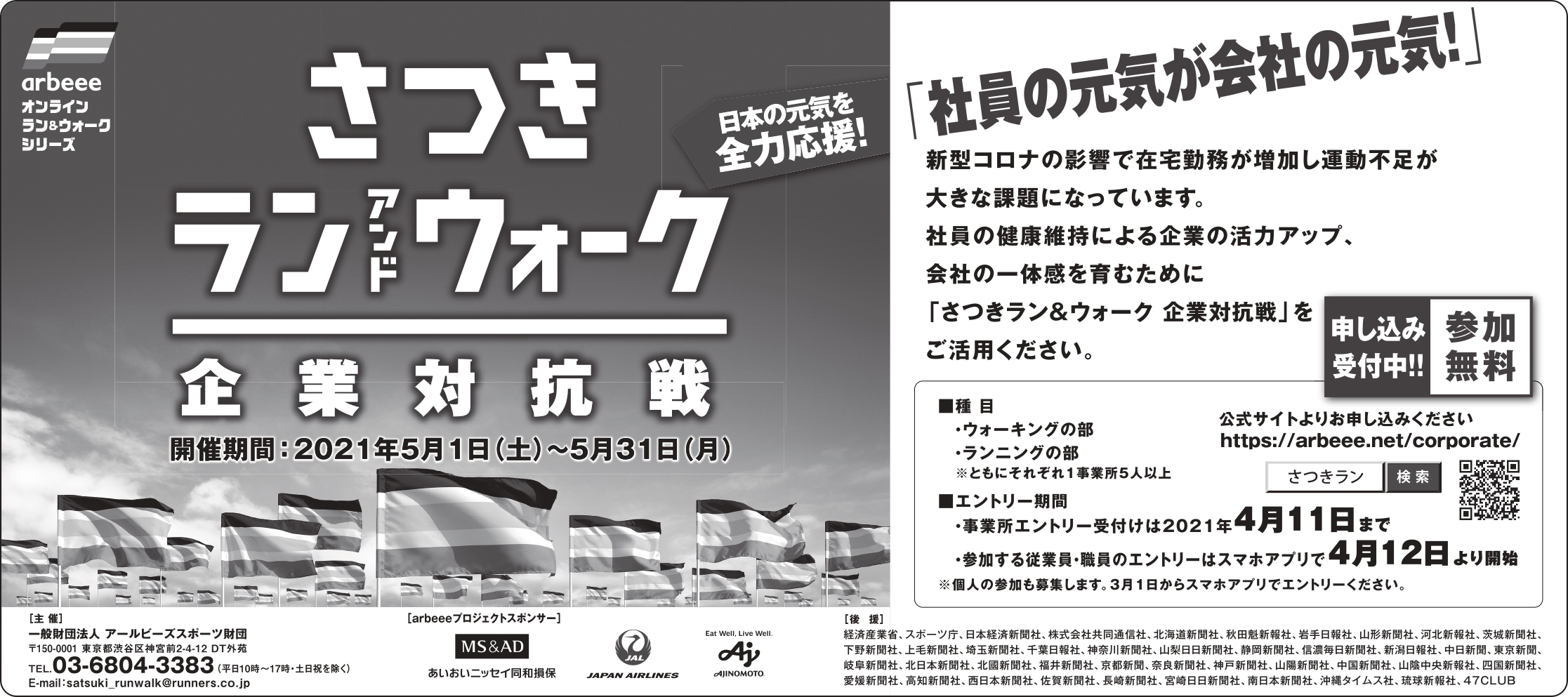 3月1日から“個人戦”のエントリーを開始している「さつき・ラン&ウォーク 企業対抗戦」。ランニングの部のエントリー者数は既に1万人を突破しました。