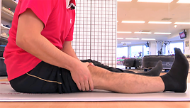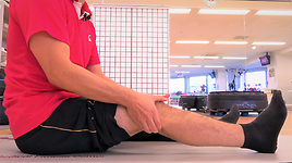 まず、脚を伸ばして座った楽な姿勢から、手の指でお皿を上下、左右に滑らかに動かしてほぐす。