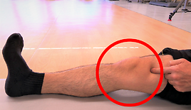 ヒザ裏の緊張をほぐし、「下腿の外旋」を矯正し、ヒザに力を入れやすくするための3つのステップ。「ヒザ痛、危険度チェック」の片脚スクワットで分かった、弱点の脚で行う。日々のトレーニングの前後に行おう!
