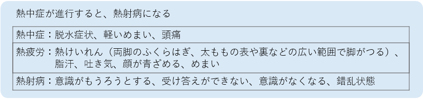 「熱中症は、平熱を保つシステムを使おうと、脳が努力している状態です。でも、それがキープできなくなると、危険度のレベルが上がり“熱疲労”に進行します」
